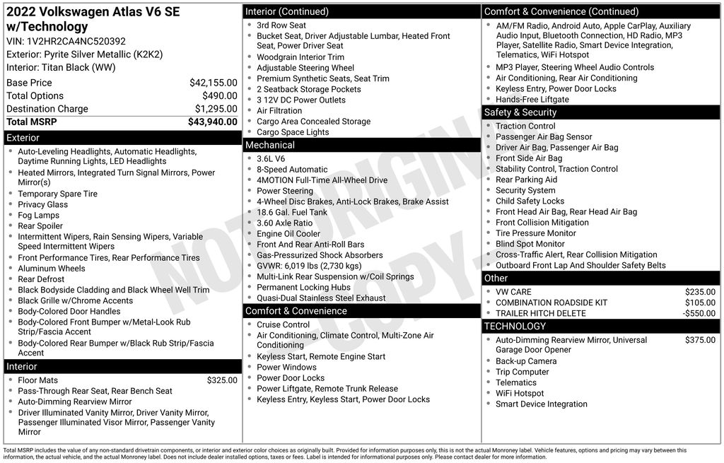 Step inside and discover the impressive array of technology and comfort features that set this Atlas apart. The MIB3 Composition Media system with an 8-inch touchscreen, SiriusXM with 360L, and a premium audio system provide an exceptional multimedia experience. Dual-zone automatic climate control, heated front seats, and a power liftgate add to the overall convenience and luxury.